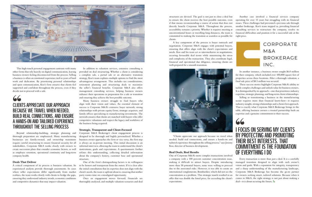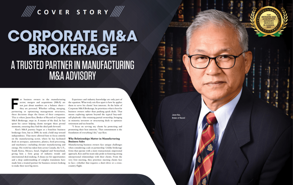 The Business Vision – We have been featured as the Cover Story article that outlines the past, present and future of Corporate M&A Brokerage Inc. along with providing insight into the firm’s vision, goals, and commitment to our clients. Read the full cover page article here.